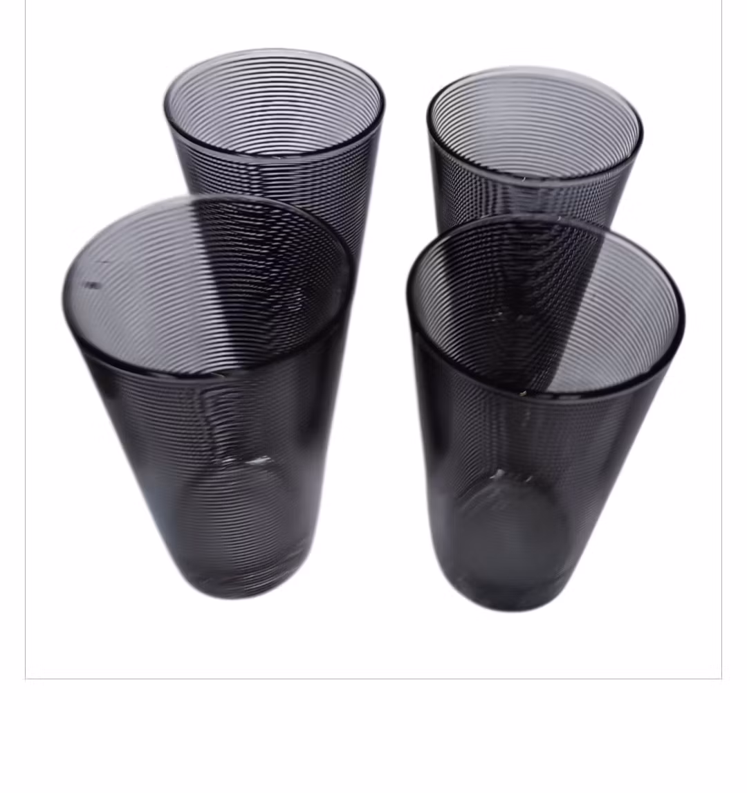 Svart räfflade dricksglas 4 st obs! ränderna är raka 125 kr Svart räfflade dricksglas höga 4 st Mått 12,5 cm höga, 8 cm dia upp till. I lager. Lägg i korgen Dela Lagersaldo: 1 Artikelnummer: 5757 Information Svart räfflade dricksglas höga 4 st Mått 12,5 cm höga, 8 cm dia upp till.