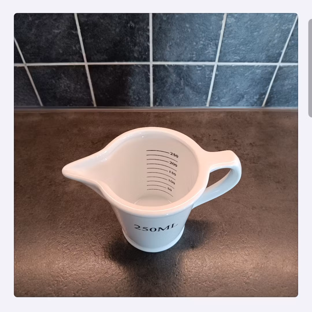 Mått kanna i porslin 250 ML 75 kr Mått kanna i porslin 250 ML. 11 cm hög, 9,5 cm dia. I lager. Lägg i korgen Dela Lagersaldo: 1 Artikelnummer: 5785 Information Mått kanna i porslin 250 ML. 11 cm hög, 9,5 cm dia.