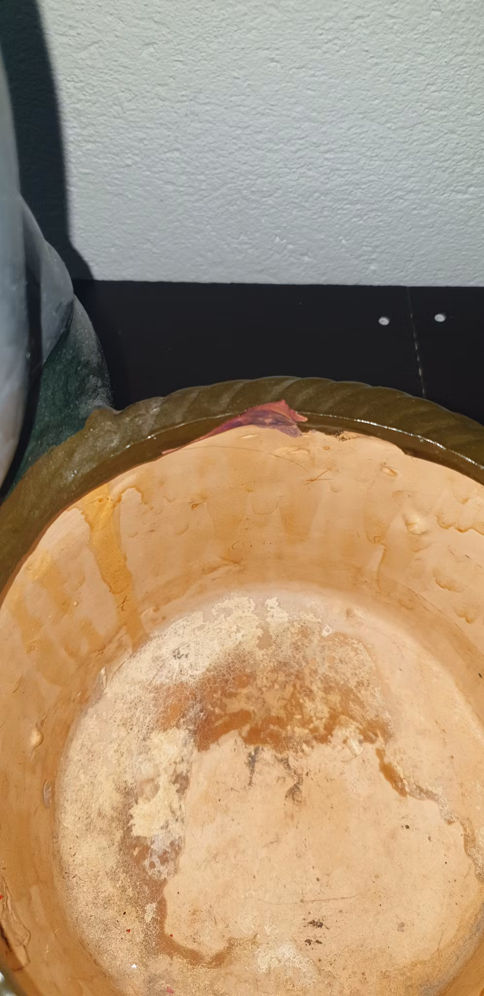 Stor tomte med kruka Keramik har ett avslag på insidan av krukan men inget som syns då man har en växt i denna 44 cm hög 35 cm bred. Konst blomma julstjärna.