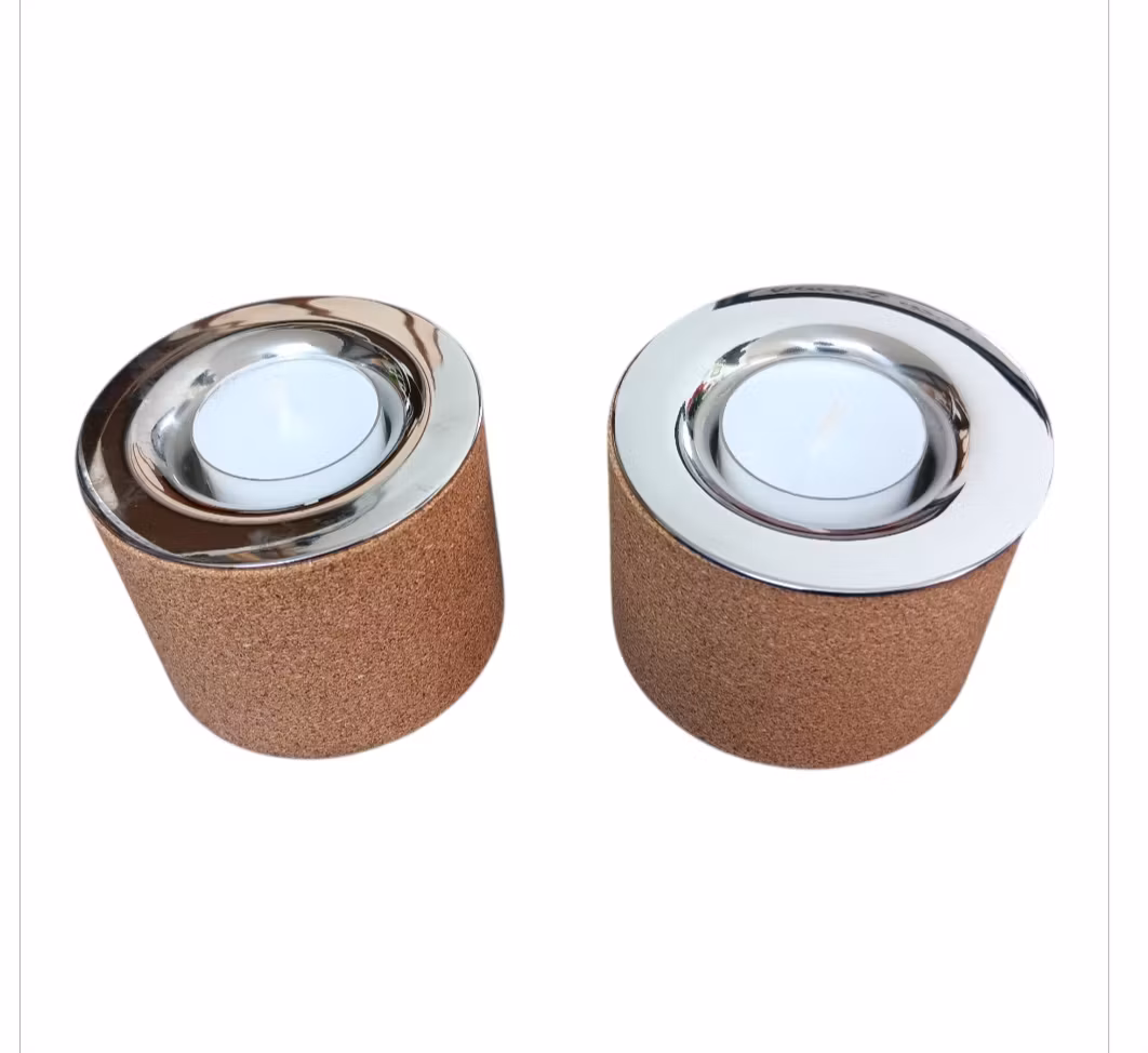 BERNADOTTE & KYLBERG Ljusstakar ,2 st, kork och stål. Oanvända.