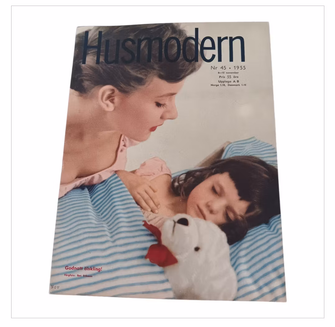 Husmodern Nr 45 1955 50 kr Veckotidningen Husmodern från 1955 nr 45. Husmodern var en svensk populär veckotidning som riktade sig till hemmafruar under mitten av1900-talet. I lager. Lägg i korgen Dela Artikelnummer: 6012 Information Veckotidningen Husmodern från 1955 nr 45. Husmodern var en svensk populär veckotidning som riktade sig till hemmafruar under mitten av1900-talet.