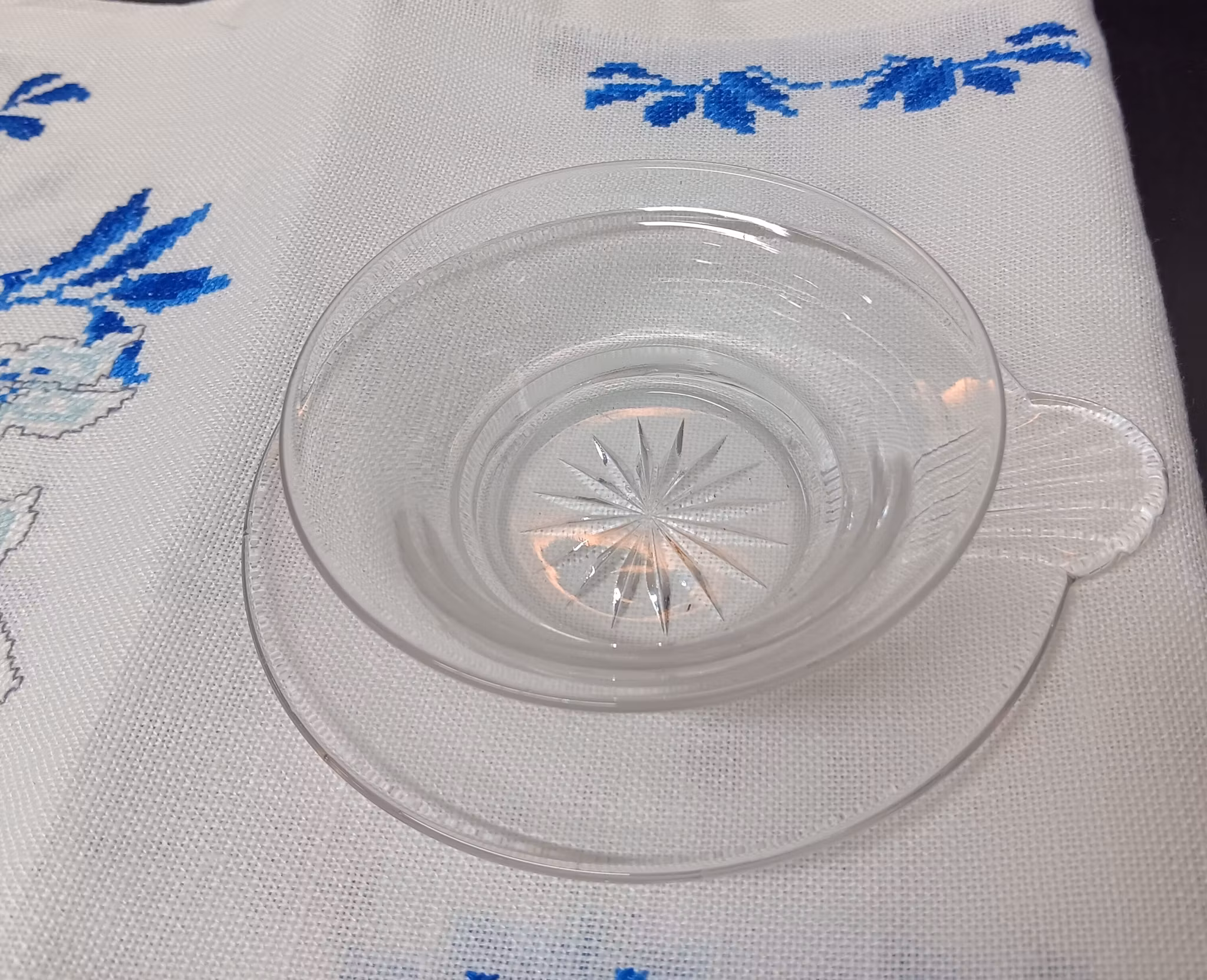 Liten glasskål retro med fast fat 65 kr Liten glasskål med ett fast fat under sig har en etsad stjärna i sin botten. Em söt skål att bara ha som den är eller till någon god sås. I lager. Lägg i korgen Dela Lagersaldo: 1 Artikelnummer: 5849 Information Liten glasskål med ett fast fat under sig har en etsad stjärna i sin botten. Em söt skål att bara ha som den är eller till någon god sås.